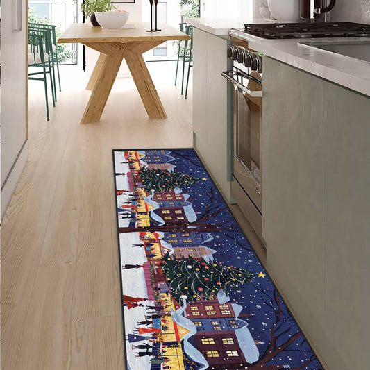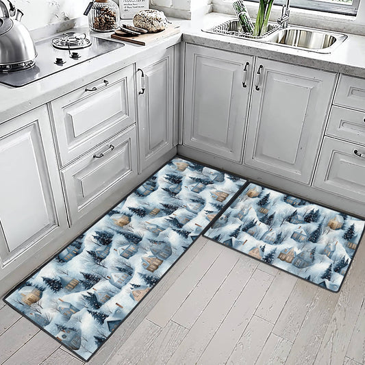 Shineful Ultra-Thin Non Skid Floor Mat, Kitchen Rugs Snow Village