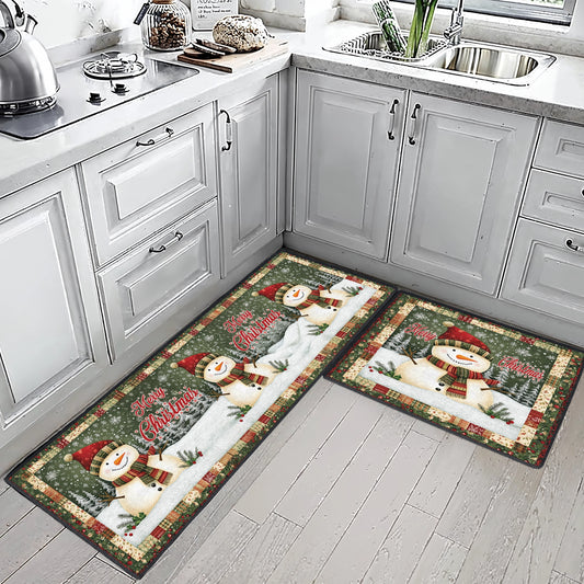 Shineful Ultra-Thin Non Skid Floor Mat, Kitchen Rugs Frosty Snowman