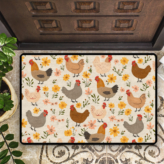 Shineful Ultra-Thin Non Skid Floor Mat, Kitchen Rugs Chicken Floral Cluckin' Cozy