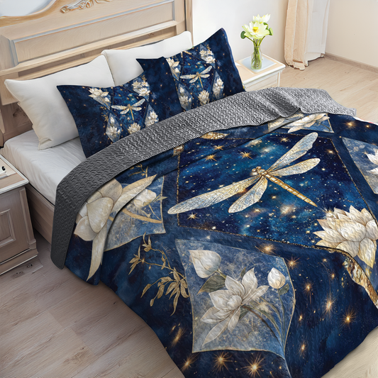 Shineful All Season Quilt 3-Piece Set Celestial Dragonfly And Lotus
