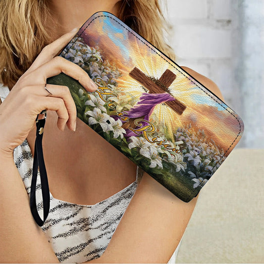 Shineful Leather Clutch Purse With Wristlet Strap Handle Easter Glory