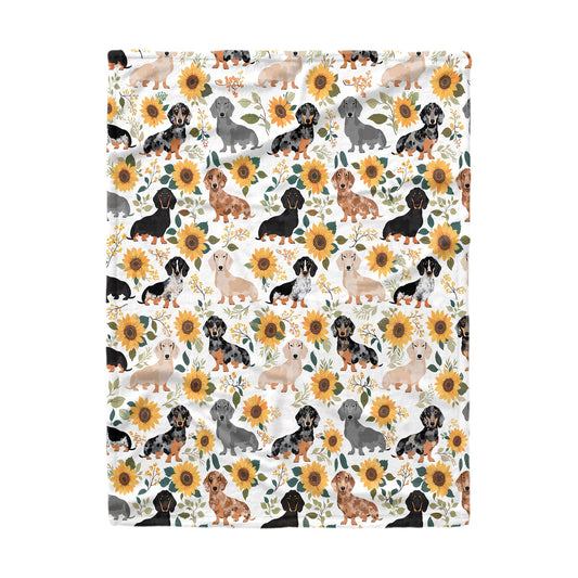 Shineful Fleece Blanket Dachshunds & Sunflowers