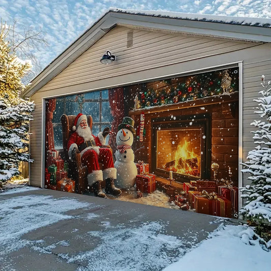Shineful Garage Door Banner Decoration - Warm Fireside Moments with Santa Claus