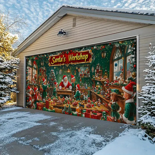 Shineful Garage Door Banner Decoration - Santa’s Magical Workshop in Action