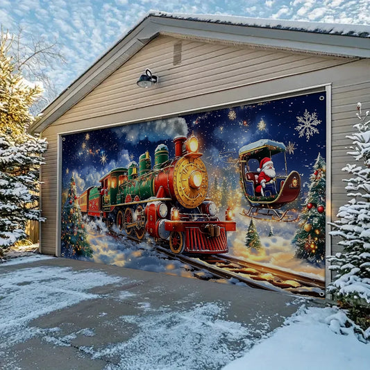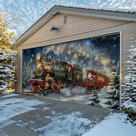 Shineful Garage Door Banner Decoration - Santa’s Magical Train Ride A Festive Journey Through Winter’s Wonderland