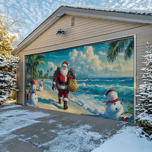 Shineful Garage Door Banner Decoration - Tropical Christmas Santa’s Beachside Holiday with Snowmen