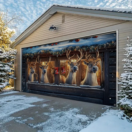 Shineful Garage Door Banner Decoration - Festive Reindeer Watching the Holiday Cheer