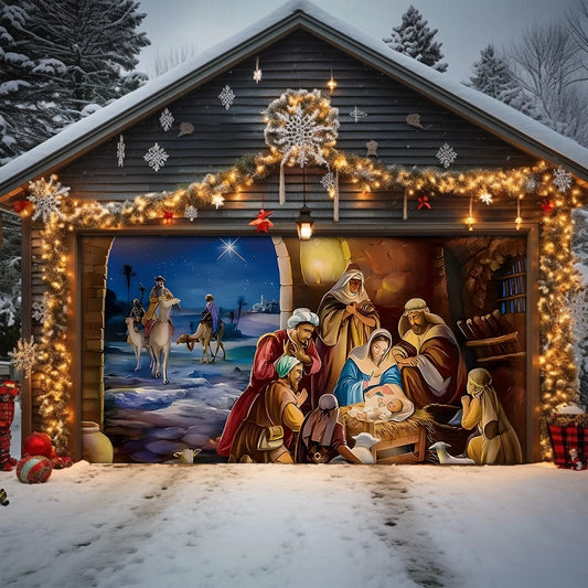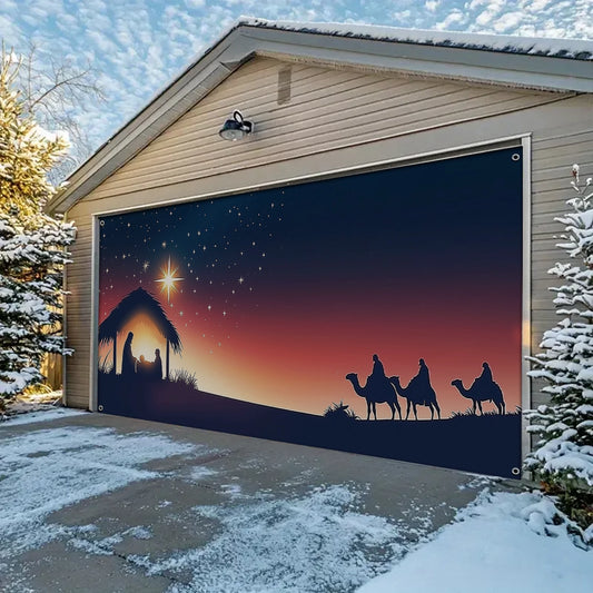 Shineful Garage Door Banner Decoration Bethlehem’s Sacred Arrival