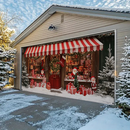 Shineful Garage Door Banner Decoration - Festive Holiday Storefront Santa’s Cozy Christmas Gift Shop