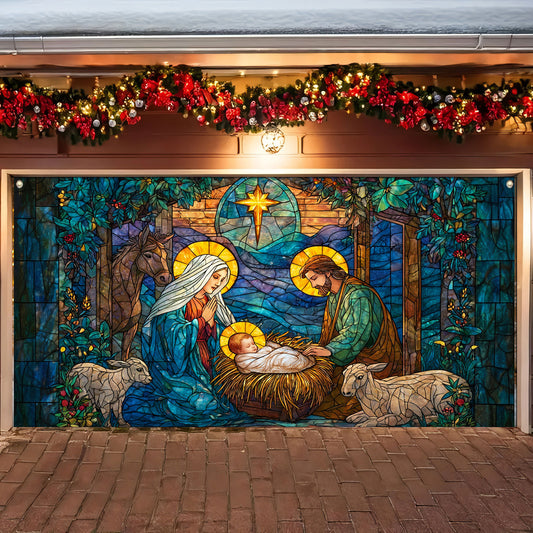 Shineful Door Cover Glass Windown Art Depicting Nativity
