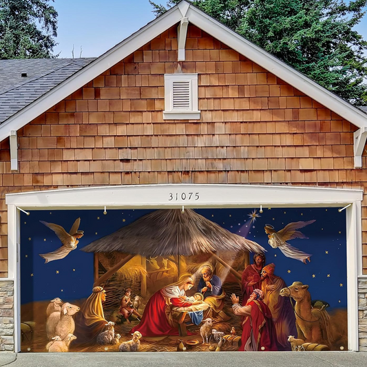 Shineful Garage Door Banner Decoration - Starry Night Adoration Nativity