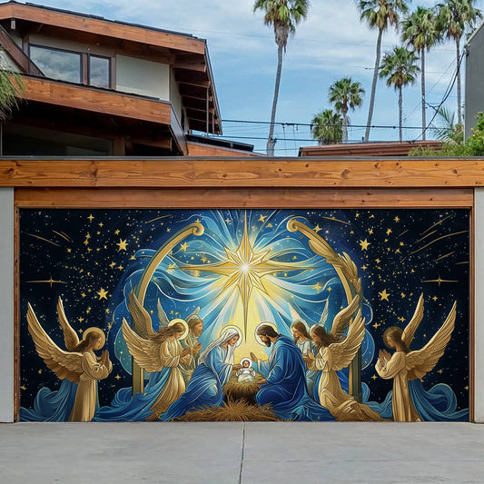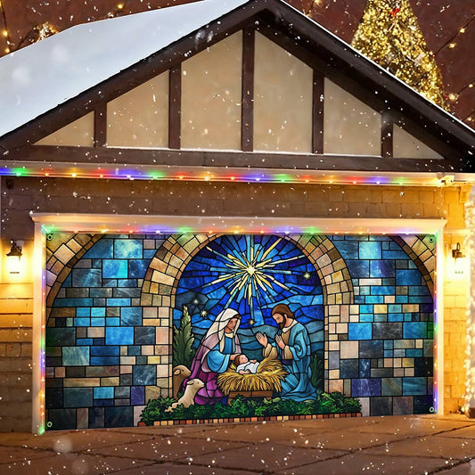 Shineful Garage Door Banner Decoration - Christmas Church Night