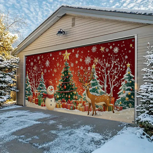 Shineful Garage Door Banner Decoration - Winter Wonderland A Festive Scene with Snowman and Reindeer