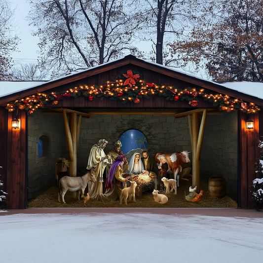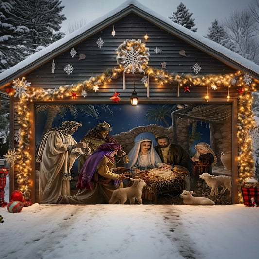 Shineful Garage Door Banner Decoration Adoration of the Christ