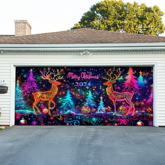 Shineful Garage Door Banner Decoration - Enchanted Reindeer Glow