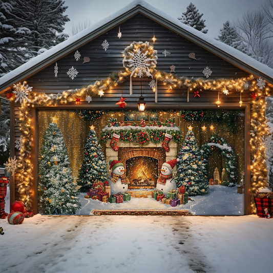 Shineful Garage Door Banner Decoration - Cozy Snowman by the Hearth