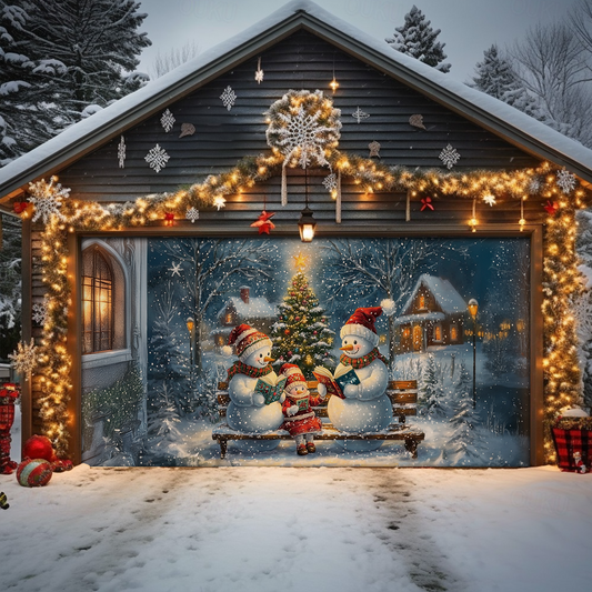 Shineful Garage Door Banner Decoration - Snowman Family Reading