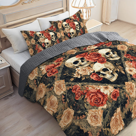 Shineful All Season Quilt 3-Piece Set Skull Dark Romance