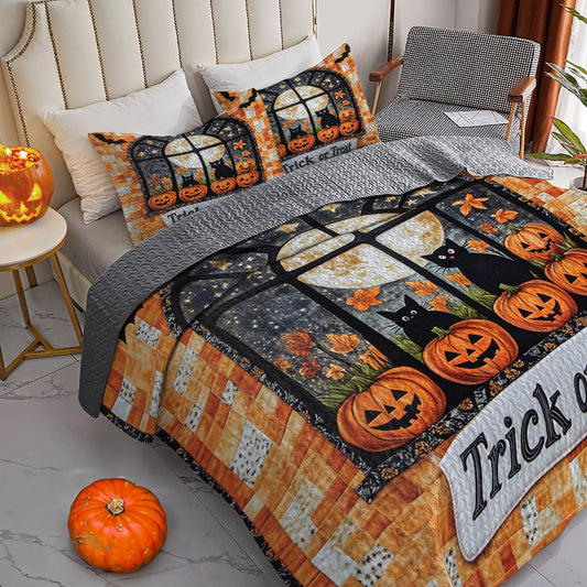 Shineful All Season Quilt 3-Piece Set Trick Or Treat Inside The Window