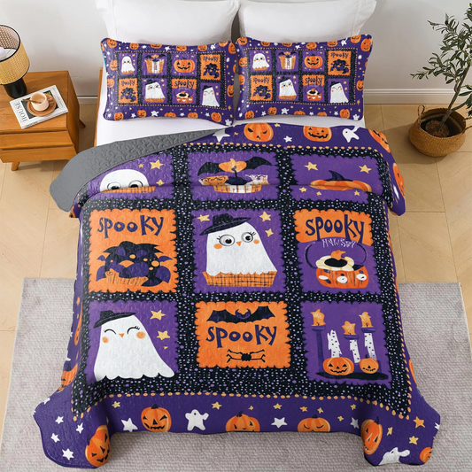 Shineful All Season Quilt 3-Piece Set Halloween Spooky Snuggles