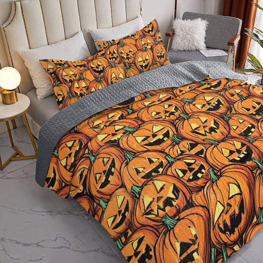 Shineful All Season Quilt 3-Piece Set - Halloween Pumpkin Patch