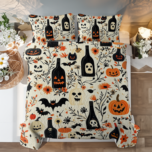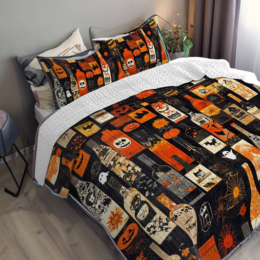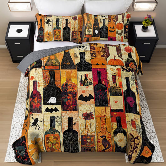 Shineful All Season Quilt 3-Piece Set Gorgeous Halloween Wine Bottles