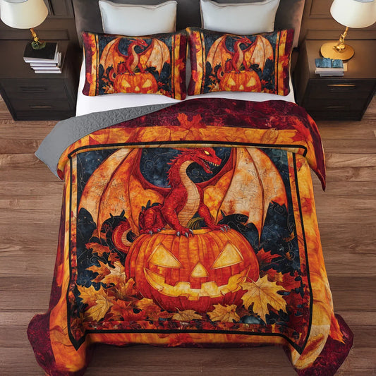 Shineful All Season Quilt 3-Piece Set Fiery Fall Dragon