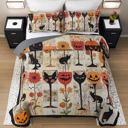 Shineful All Season Quilt 3-Piece Set Cute Halloween Wine Glasses