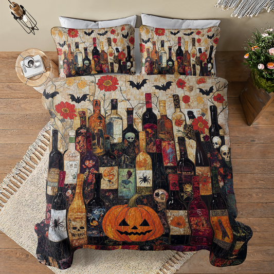 Shineful All Season Quilt 3-Piece Set Gentle Wine Bottles Halloween