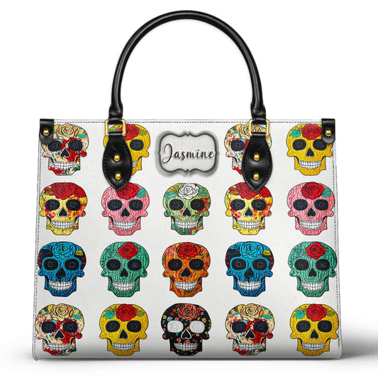 Shineful Leather Bag Colorful Sugar Skull Roses