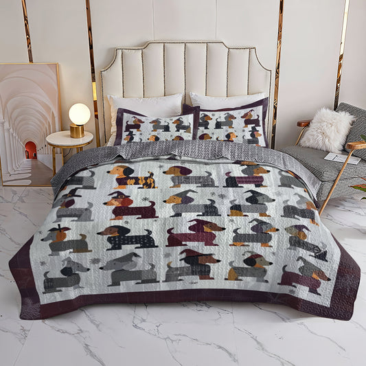 Shineful All Season Quilt 3-Piece Set - Cute Dachshund Happy With Halloween