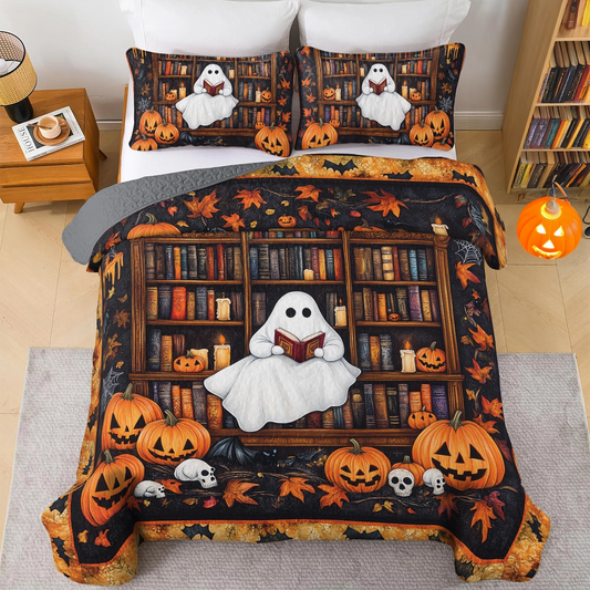Shineful All Season Quilt 3-Piece Set Haunted Library Reading