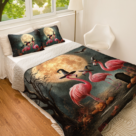 Shineful All Season Quilt 3-Piece Set - Spooky Flamingo Halloween
