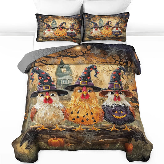 Shineful All Season Quilt 3-Piece Set - Chicken Spooky Hat Witch