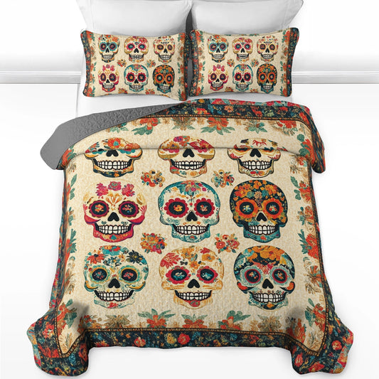 Shineful All Season Quilt 3-Piece Set Vintage Skull Bouquet