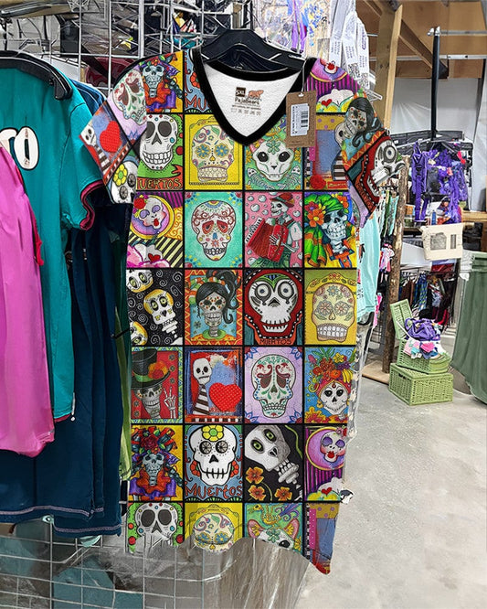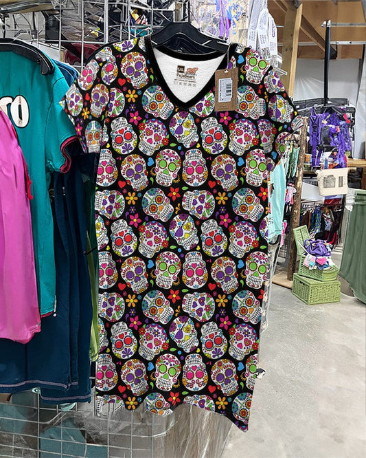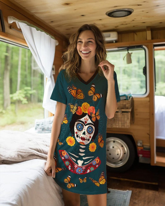 Skulls V-neck Nightshirts Dia de Muertos 01
