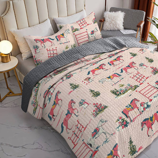 Shineful All Season Quilt 3-Piece Set Horse Racing Ver2