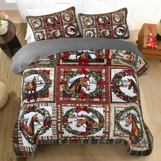 Shineful All Season Quilt 3-Piece Set Horse Holiday Hooves