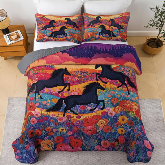 Shineful All Season Quilt 3-Piece Set Colorful Horses