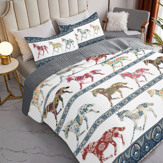 Shineful All Season Quilt 3-Piece Set Horse Galloping In Pattern