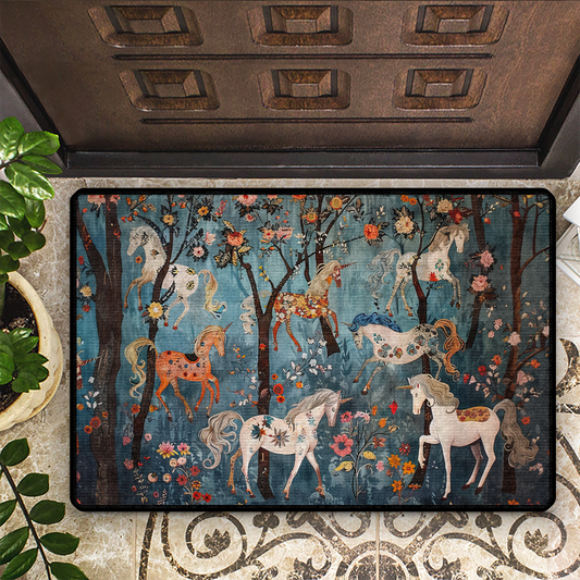 Shineful Ultra-Thin Non Skid Floor Mat, Kitchen Rugs Enchanted Forest Horse