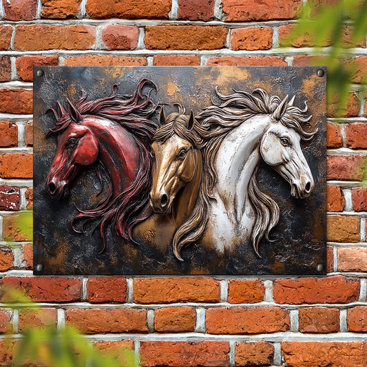 Shineful 2D Metal Sign Galloping Trio: Majestic Horses