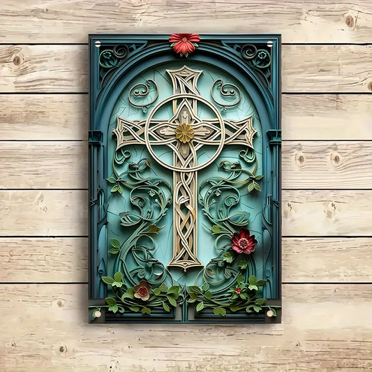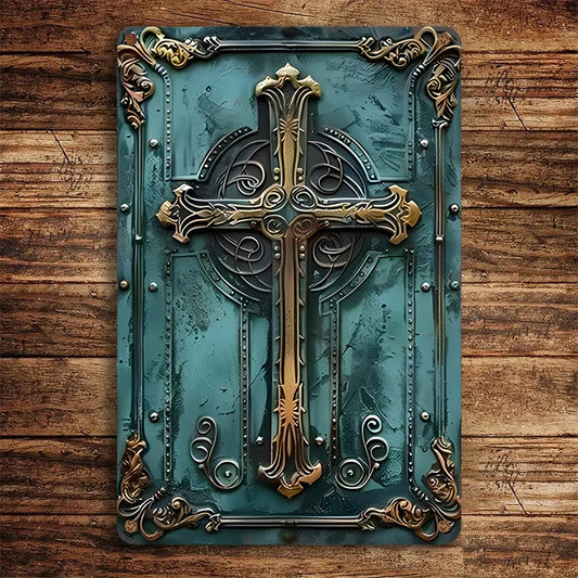Shineful 2D Metal Sign Emerald Heritage Cross