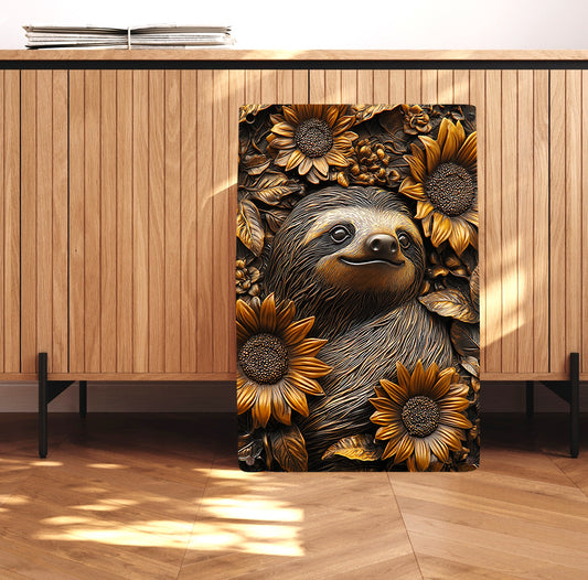 Shineful 2D Metal Sign Sleeping Sloth With Sunflower