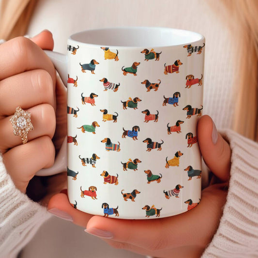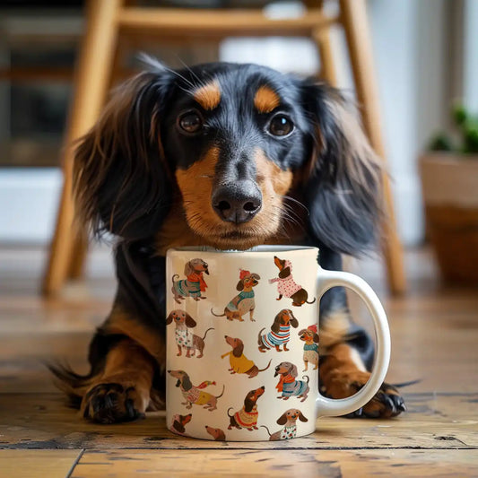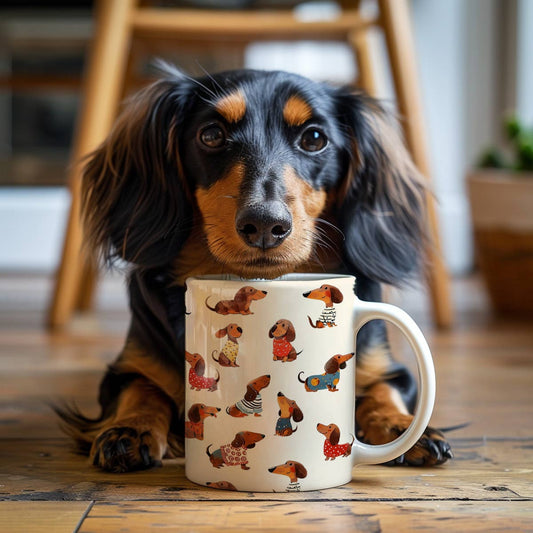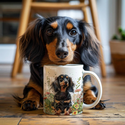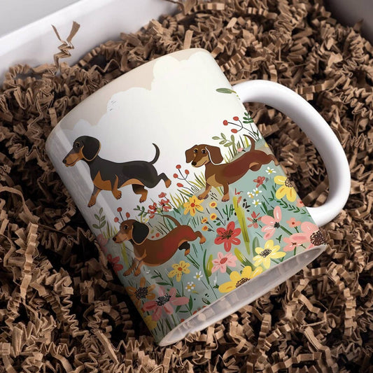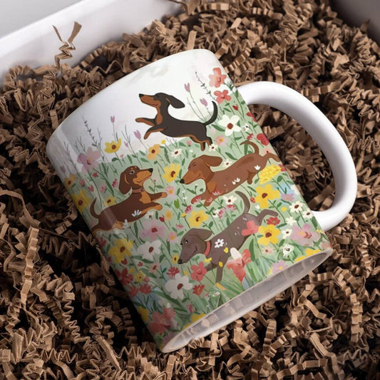 Shineful Ceramic Mug Dachshund in Flower Garden