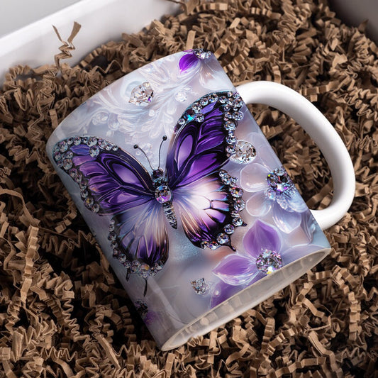 Shineful Ceramic Mug Elegent Crystal Purple Butterfly