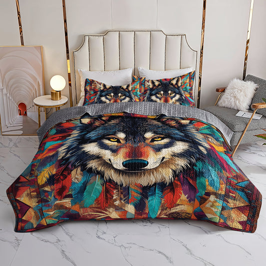 Shineful All Season Quilt 3-Piece Set - Native Spirit Wolf