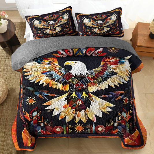 Shineful All Season Quilt 3-Piece Set - Native American Eagle Vibrant