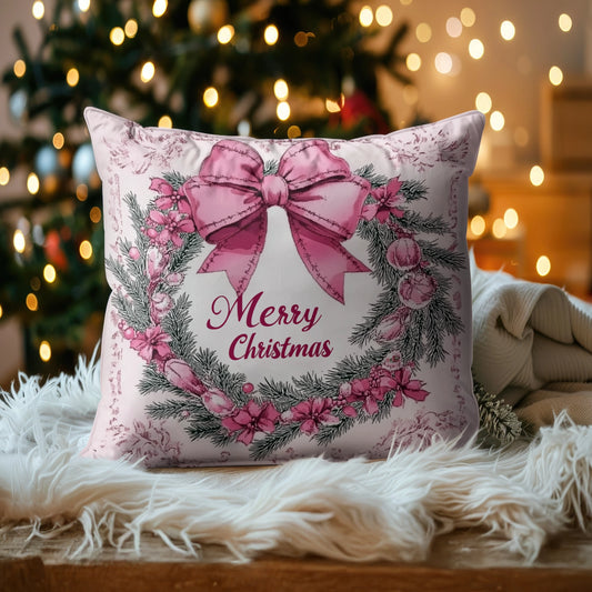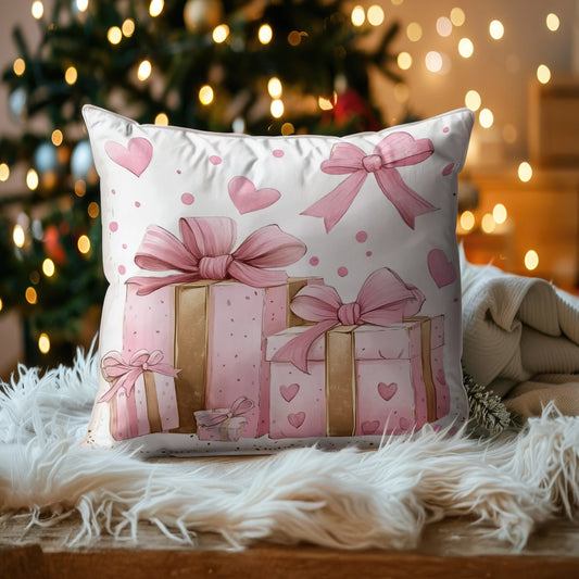 Shineful 2D Print Cushion Cover, Pillowcase, Pillows Covers - A Merry Christmas Wrapped in a Pink Bow