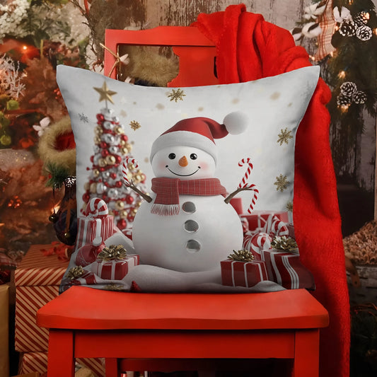 Shineful 2D Print Cushion Cover, Pillowcase, Pillows Covers - Jolly Snowman with Candy Canes and Christmas Gifts